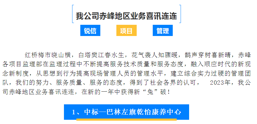 內(nèi)蒙古銳信工程項目管理有限責任公司赤峰各項目監(jiān)理部人員,奮勇?lián)、高效?yōu)質(zhì)、安全推進項目建設,傾心打造優(yōu)質(zhì)精品工程,奮力譜寫高質(zhì)量發(fā)展新篇章。
