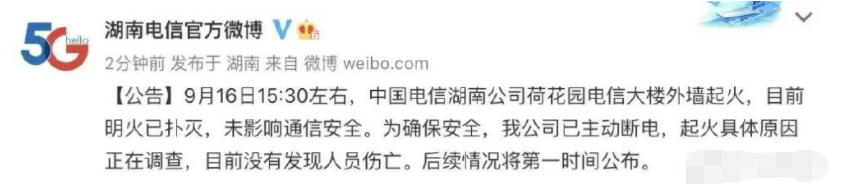 9月16日下午,位于湖南長沙市區(qū)內(nèi)的中國電信大樓發(fā)生火災(zāi),現(xiàn)場濃煙滾滾,數(shù)十層樓體燃燒劇烈。消防救援人員趕到現(xiàn)場后很快將火勢控制,目前大樓明火已被撲滅,目前沒有發(fā)現(xiàn)人員傷亡