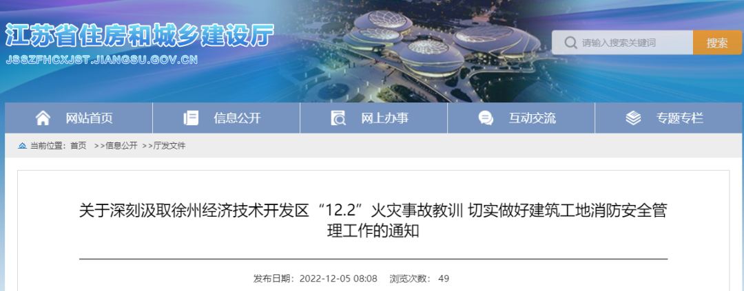 0471-6682310昨天和今天,江蘇省住建廳相繼發(fā)布徐州12.2火災(zāi)事故通報(bào)和《關(guān)于深刻汲取徐州經(jīng)濟(jì)技術(shù)開(kāi)發(fā)區(qū)“12.2”火災(zāi)事故教訓(xùn)切實(shí)做好建筑工地消防安全管理工作的通知》。