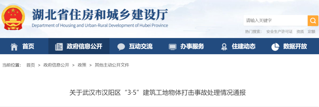 0471-6682310近日,湖北省住建廳發(fā)布《關(guān)于武漢市漢陽(yáng)區(qū)“3·5”建筑工地物體打擊事故處理情況通報(bào)》。