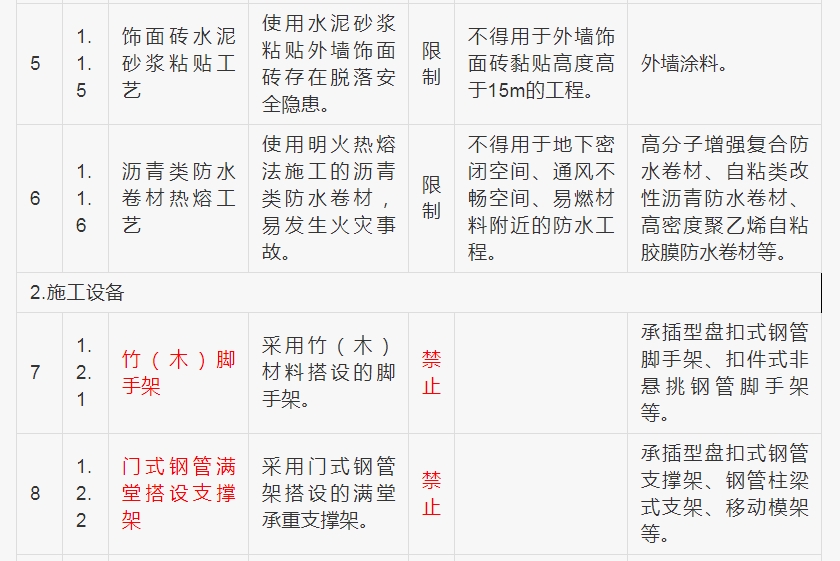 0471-6682310近期,住建部發(fā)布《房屋建筑和市政基礎(chǔ)設(shè)施工程淘汰危及安全生產(chǎn)施工工藝、設(shè)備和材料目錄(第一批)(征求意見(jiàn)稿)。共淘汰22項(xiàng)施工工藝、設(shè)備和材料,竹(木)腳手架和門式鋼管滿堂搭設(shè)支撐架被禁止使用。