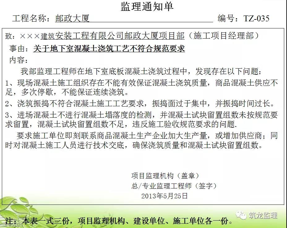 填報時應(yīng)說明工程名稱、施工單位、工程部位,并附監(jiān)理處理過程文件(《監(jiān)理通知單》、《工程暫停令》等,應(yīng)說明時間與編號),以及其他檢測資料、會議紀(jì)要等。
