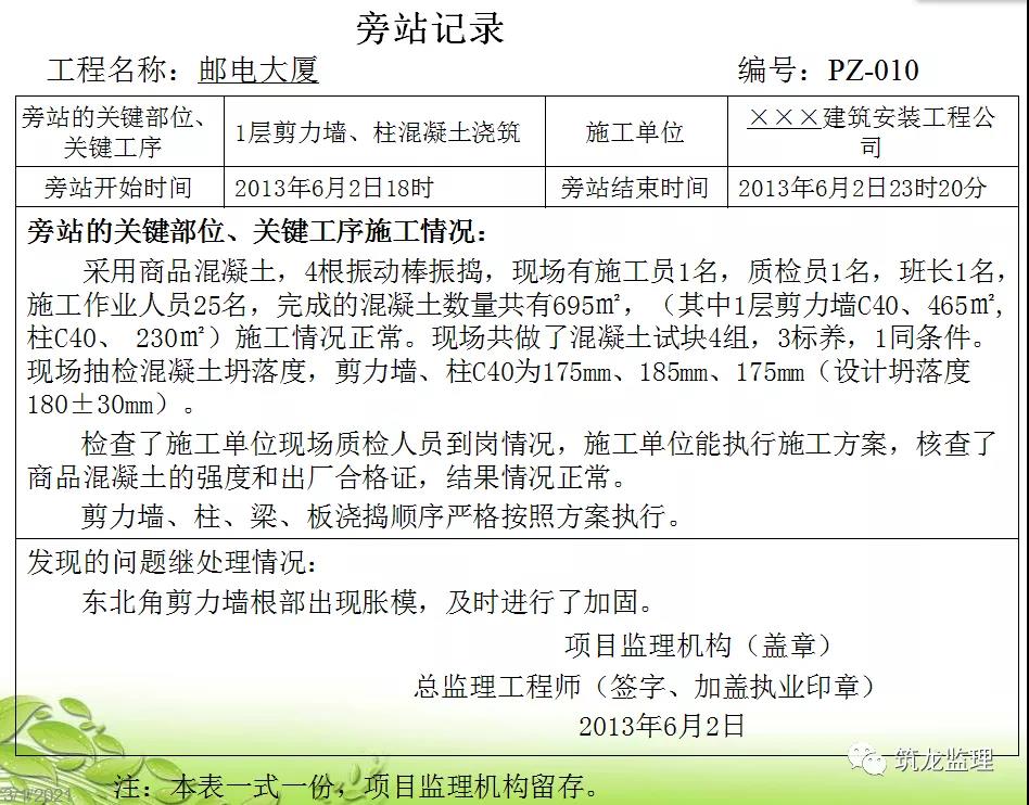 3.處理情況是指旁站人員對于所發(fā)現(xiàn)問題的處理。