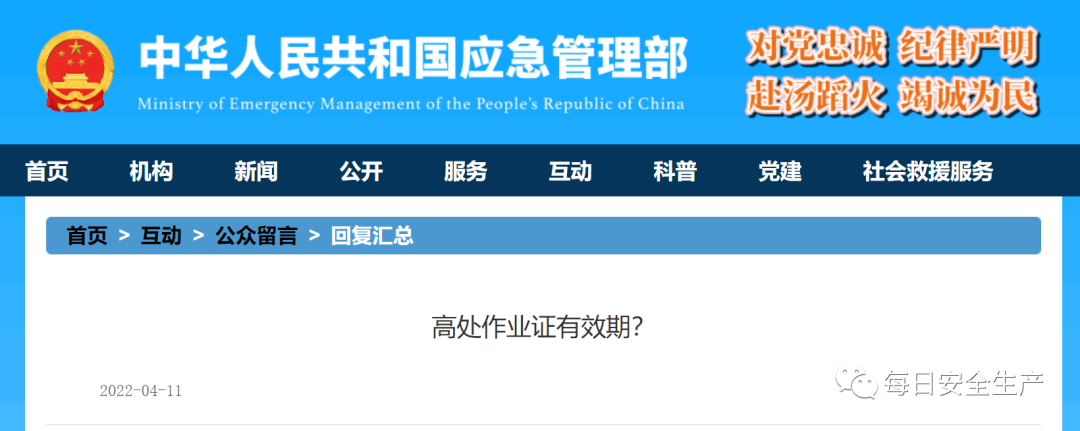 問題2、咨詢:您好!想咨詢一下,高處作業(yè)證是否有跟動火作業(yè)證和受限空間作業(yè)證一樣的有效期,多少天還是多少小時?具體可在哪里查詢?盼復(fù)!咨詢時間: 2022-04-07