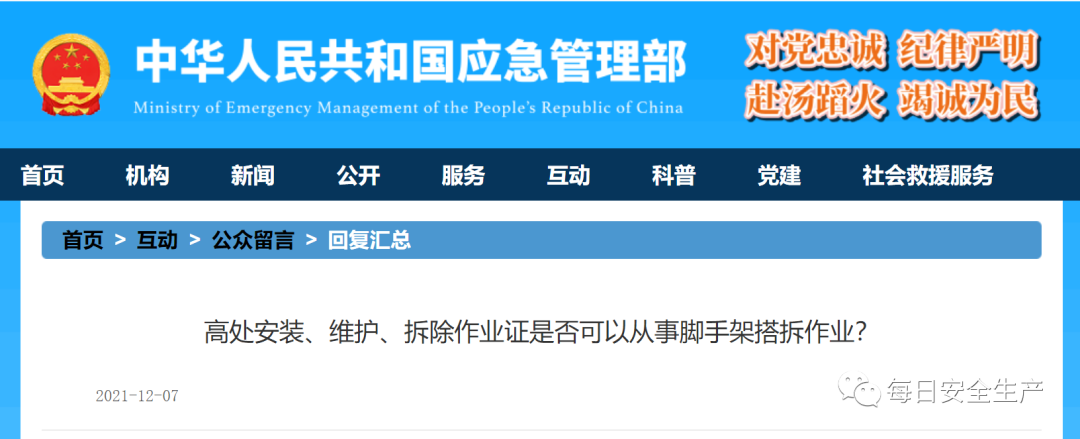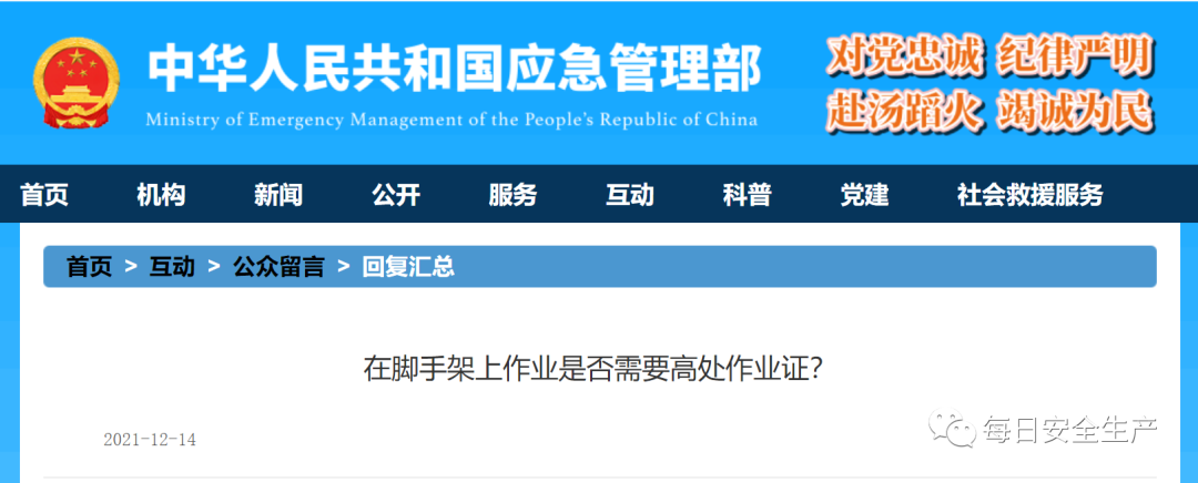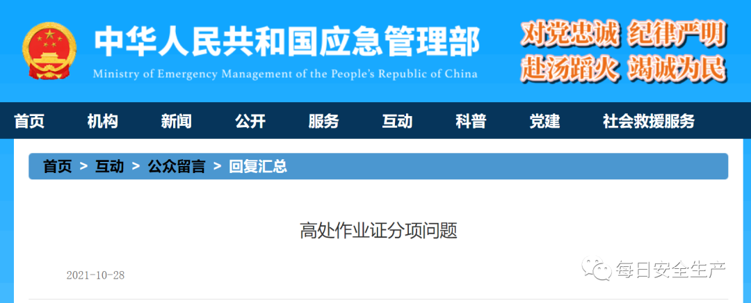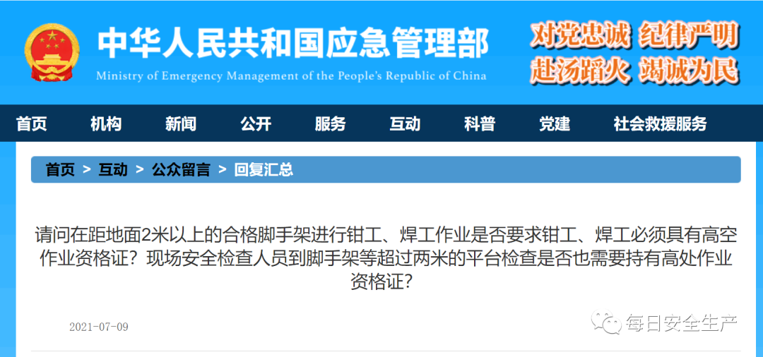 0471-6682310應(yīng)急管理部關(guān)于高處作業(yè)相關(guān)問題的答復(fù)匯總